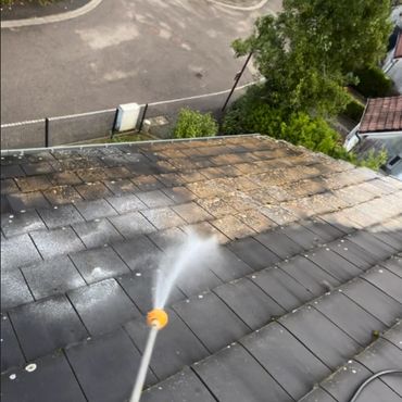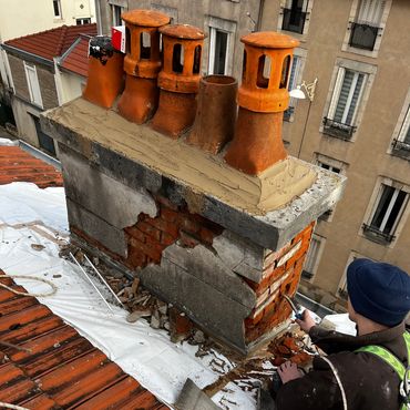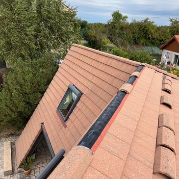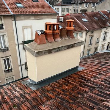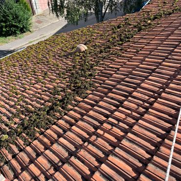 Révision générale, démoussage et nettoyage complet, crépis de cheminée, réparations et remplacements de zinguerie (gouttières, chéneaux, solins...),